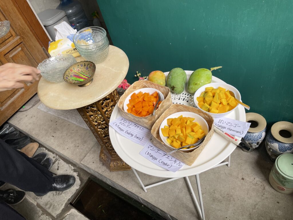 インドラマユはマンゴーの街ということでマンゴーの食べ比べをさせていただきました。さっぱりとしたマンゴーや甘味が特徴のマンゴー、全部味が違っていて面白いです。