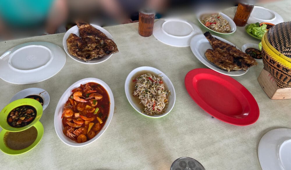 体験の前にレストランへ移動してランチです。インドラマユは港町でもあるということで、シーフードレストランに案内していただきました。焼き魚や野菜、エビチリ風なお料理などがずらり。どれも普段食べる機会がないので楽しいです。