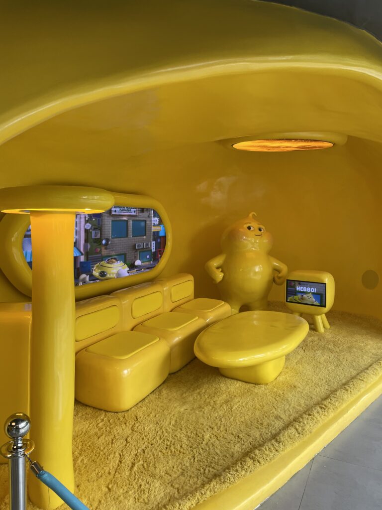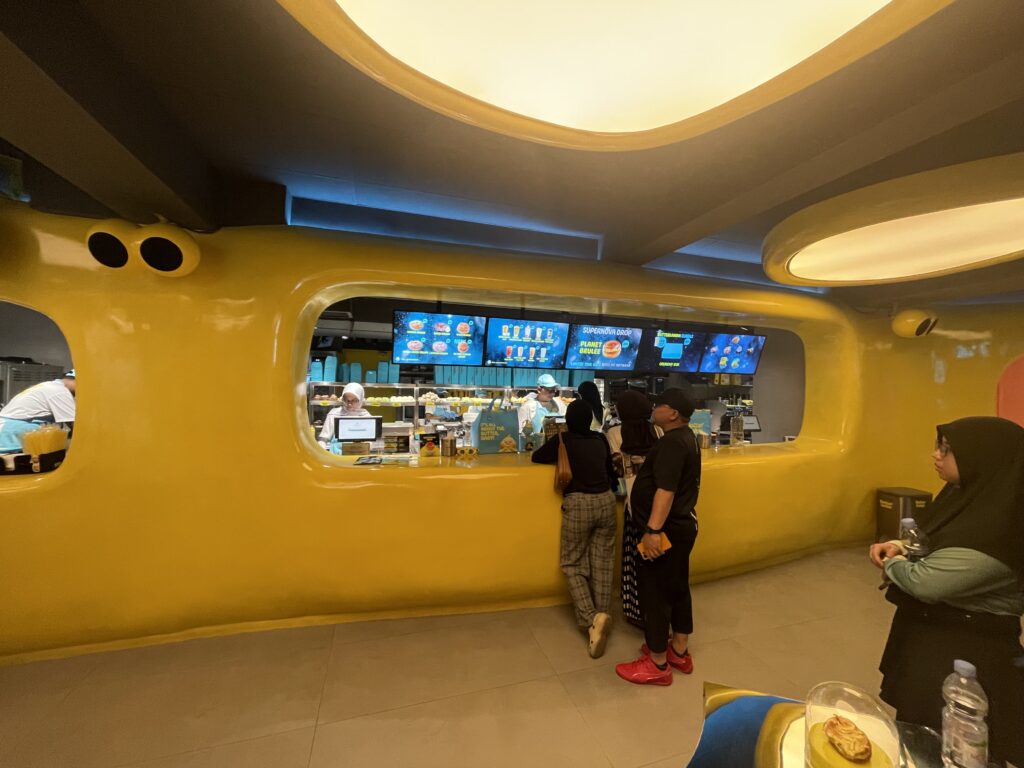 店内も黄色一色で宇宙船をイメージして作られているようでした。